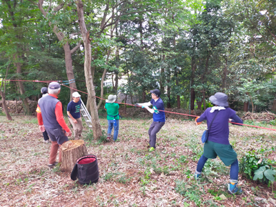 定例活動にご参加いただく場合、現地の管理方針に従い、現地ボランティアメンバーと共に上記のような下草刈りや伐木等の森林保全・整備作業を一緒に行っていただきます。