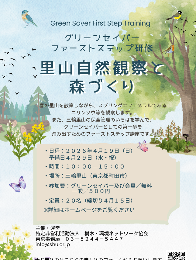 【第1回グリーンセイバーファーストステップ研修】~里山自然観察と森づくり~を開催いたします。